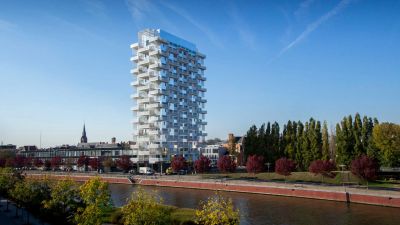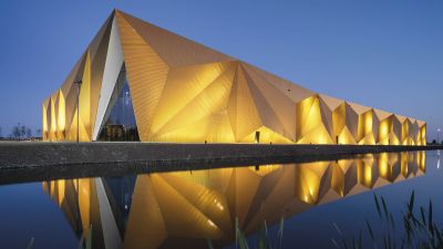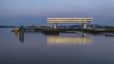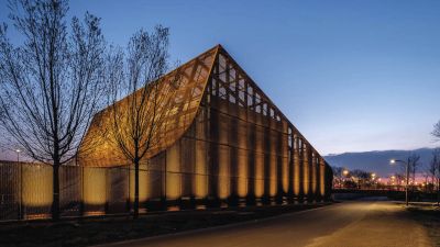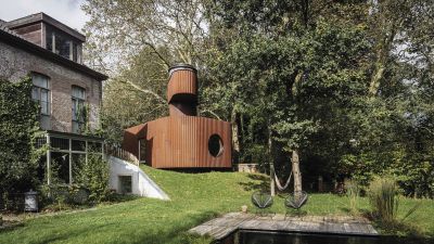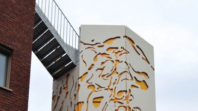 Grote Schijn pumping station clad in Corten steel expanded metal