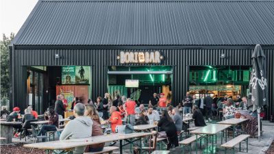• Tekst: Sur son toit plat, cinq terrains de padel et autant de (mini) football sont à la disposition des Carolos qui peuvent pratiquer leur sport favori haut perchés. Des équipements complétés par une cafétaria, toujours en toiture. Une bonne année plus tard, ces infrastructures gérées par Garrincha ont été en partie recouvertes par un étonnant préau métallique, qui ne dénote en rien par rapport au contexte.
