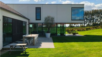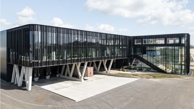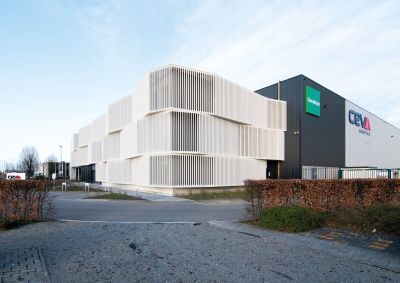 • Tekst: Quiconque quitte Herentals via la N13 et le pont sur le canal Albert ne peut ignorer The Cool Factory, dont l’impressionnante façade en verre du bâtiment principal domine fièrement tout ce qui l’entoure. Il s’agit de la nouvelle base opérationnelle d’un maître d’ouvrage ambitieux qui accorde une grande importance à la durabilité, à la fonctionnalité et à l’esthétique. Le Creative Cooling Group s’est en effet installé sur une ancienne base de l’armée britannique et a opté pour un juste milieu entre construction neuve et rénovation. Une partie des hangars militaires existants ont été réaménagés et complétés par un nouveau bâtiment de grande hauteur, qui a aussi reçu une toiture à deux versants avec charpente en acier. De subtils clins d’œil architecturaux à l’activité principale de l’entreprise complètent le tableau.