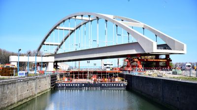• Tekst: Dans le cadre du projet « Pôle d’échange multimodal de la gare d’Ettelbruck », la reconstruction du pont Patton permet de prioriser les bus, offrir un gabarit adéquat pour la mobilité douce mais également créer l’opportunité d’augmenter le gabarit ferroviaire pour être en conformité avec les nouvelles normes CFL. Le nouveau pont Patton est un ouvrage mixte en acier-béton à trois travées d’une longueur totale de 175 m. L’ouvrage est un caisson métallique fermé constitué d’augets droits liaisonnés à des diaphragmes espacés de 5 m. Le caisson est cintré longitudinalement et encastré au niveau des deux piles intermédiaires, il présente notamment un rayon de courbure de 120 m. En partie supérieure, le pont est composé de deux voies de circulation, une voie de service, une piste cyclable et une voie dédiée aux bus.