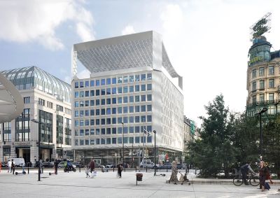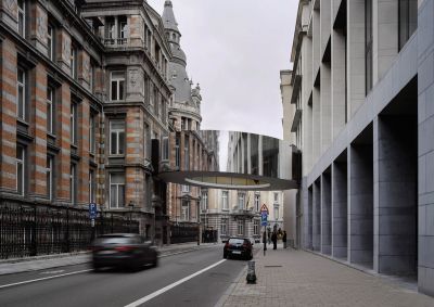 • Tekst: <p>Ce bâtiment, qui abritait la Bourse de Bruxelles, a été conçu par l’architecte Léon-Pierre Suys, et construit entre 1868 et 1873 en style néo-palladien. Il fut modernisé en 1930 par l’architecte François Malfait. Le projet consistait en sa réaffectation en «Belgian Beer World» comprenant également le Centre d’expérience Belge de la Bière, un centre de conférences, une brasserie panoramique sur le toit, un restaurant, une zone commerciale, une zone administrative et de services. </p><p>Les structures métalliques les plus remarquables de ce projet sont le Skybar, les escaliers des entrées latérales et les corbeilles avec occuli permettant une visibilité sur le site archéologique. Le nouveau Skybar en toiture est constituée d’une résille métallique légère supportée par des lames. Celles-ci s’appuient régulièrement sur des colonnes cruciformes traversant la boîte en verre. La hauteur relative de la structure ainsi que la faible prise au vent et à la neige, permettent des grandes portées et des porte-à-faux conséquents. Dans la partie centrale, la toiture vitrée du grand bar est suspendue à l’auvent. Les escaliers des entrées latérales sont composés d’une structure métallique très légère. Les garde-corps constitués de plats très fins supportent l’escalier de manière asymétrique sur un des 2 côtés. </p>