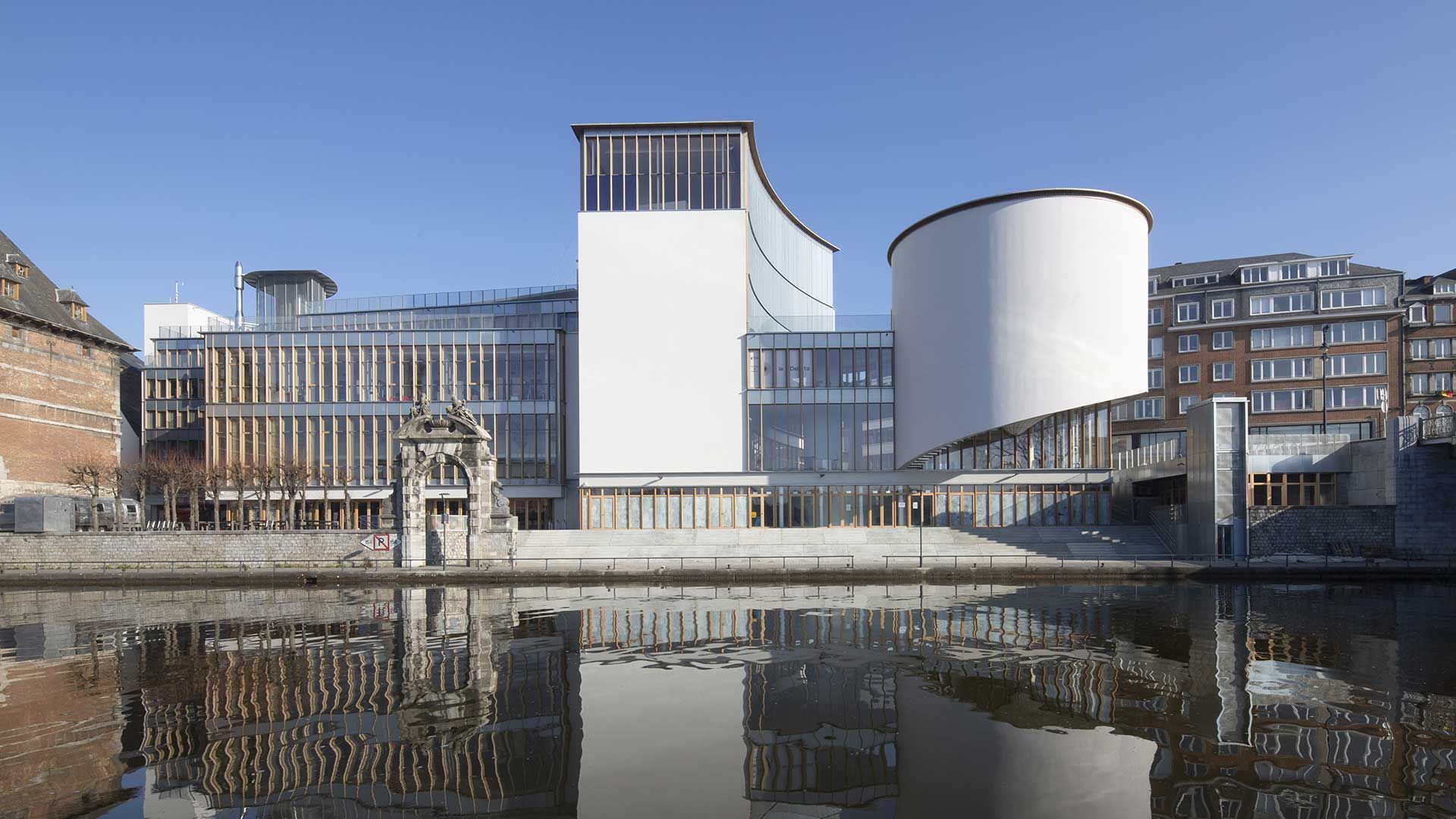 Les qualités de l’acier sont aussi exploitées e.a. dans les grills techniques des différentes salles et dans une cage d’escaliers où ceux-ci sont supportés par des cadres en tôles de 2 mm avec le motif ‘sur mesure’ sans aucuns tirants diagonaux de contreventement, tous les efforts étant contenus par la tôle.