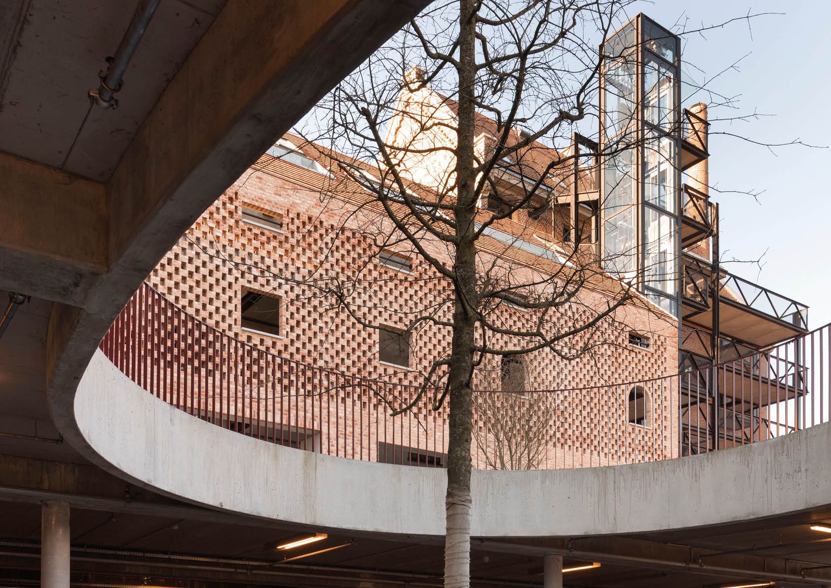 Depuis son réaménagement, l’emblématique brasserie Eylenbosch abrite 55 appartements, des espaces commerciaux et une micro-brasserie. Le caractère historico-industriel du site est resté intact et a même été renforcé par de nouveaux éléments, notamment des passerelles extérieures avec deux noyaux de circulation verticaux avec escaliers et ascenseurs. Il s’agit d’une structure de sept étages avec des colonnes et des poutres en acier et des chapes en béton.