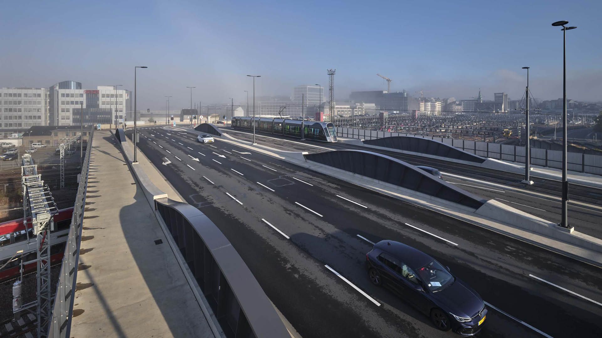Dans le cadre d'un vaste projet d'infrastructure de transport de la capitale luxembourgeoise, le vieux pont Büchler, qui enjambe les 12 lignes de chemin de fer, devait être remplacé. Le nouveau projet de pont se caractérise par une section de circulation nettement élargie qui, outre des trottoirs et des pistes cyclables plus larges, comporte au total six voies pour le trafic routier et un nouveau tracé de tramway à deux voies.
