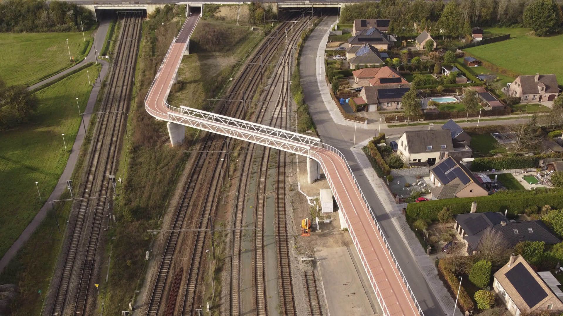 Le pont cyclable au-dessus d’un faisceau ferroviaire à Lier en acier ne mesure pas moins de 250 m de long. Il comprend le pont principal en acier au-dessus d'un tronc de chemin de fer et 2 culées - une culée de 125 m de long située entre 2 troncs de chemin de fer et une culée de 85 m de long entre un tronc de chemin de fer et une rue.