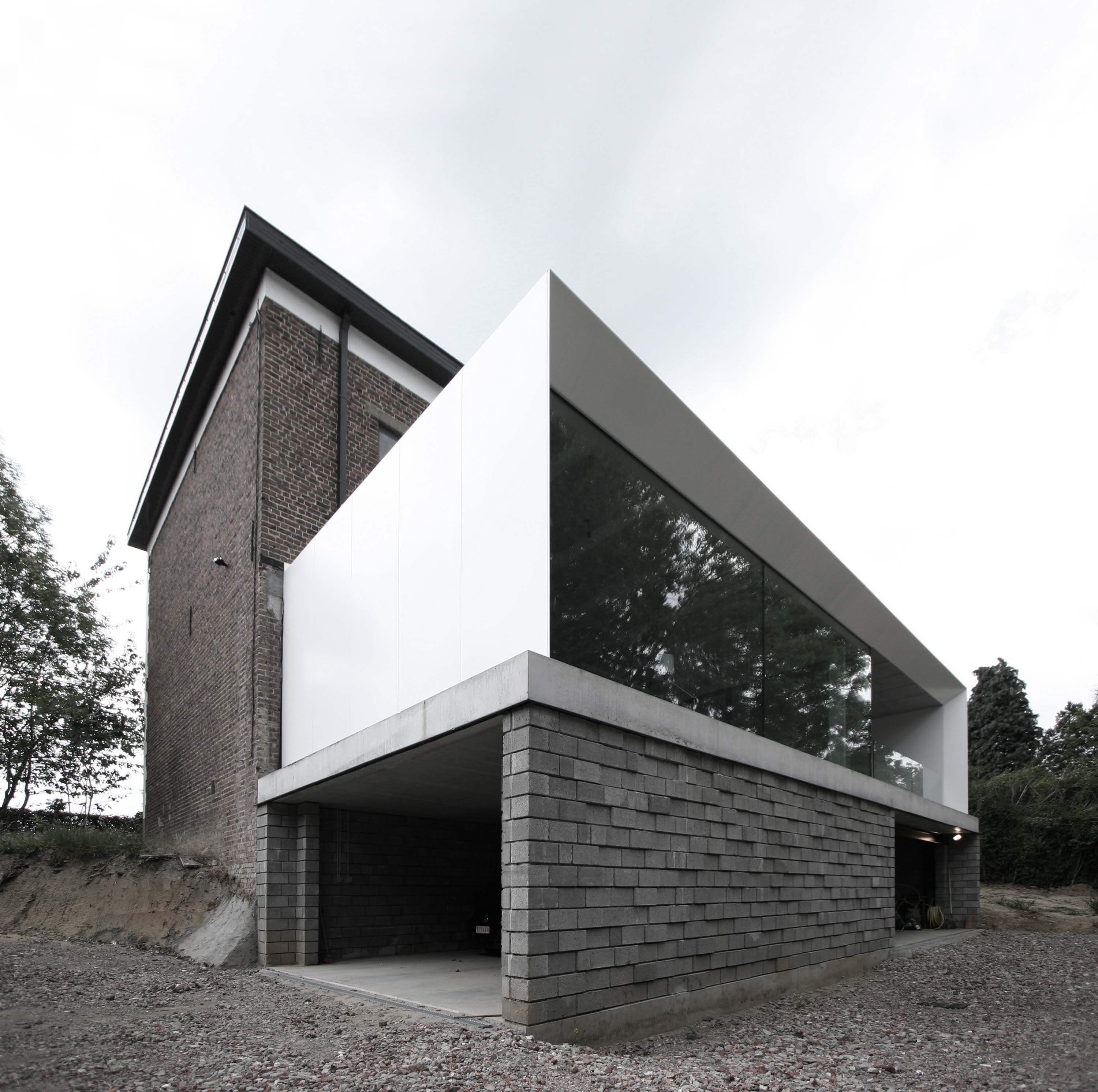 De eigenaar van deze woning zocht naar een nieuwe aanbouw die een kwaliteitsvolle aanvulling kon zijn op het bestaande woonprogramma. Het uitzicht op de groene, bosrijke omgeving was hierbij een belangrijk uitgangspunt. Uiteindelijk werd er geopteerd voor een transparant volume met een stalen draagstructuur dat de bewoners toch voldoende privacy garandeert. De uitbreiding biedt plaats aan een leefruimte, een eetplaats en een overdekt terras en laat de bewoners toe om volop te genieten van hun achtertuin. Door de helling van het terrein, geeft het kelderniveau uit op de tuin. Het kelderniveau werd, samen met het volume op het gelijkvloers, uitgebreid en fungeert nu als betonnen sokkel voor het transparante volume op het gelijkvloers. In de kelder bevinden zich twee overdekte parkeerplaatsen en een berging.