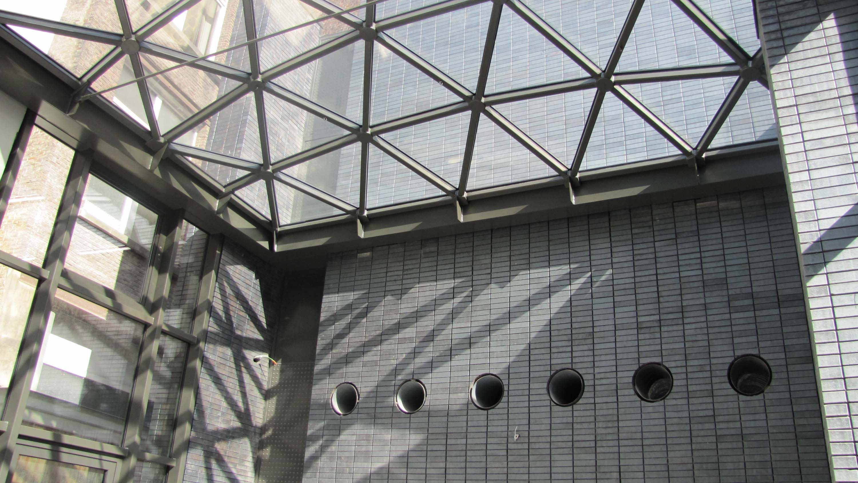 Hotel Dewez in Brussel is befaamd voor zijn indrukwekkende glazen koepel. Deze koepel wordt ondersteund door een staalstructuur die ontworpen werd als een 3D-bogenstructuur, waardoor de afmetingen van de stalen profielen (kokers) zeer beperkt kunnen blijven en de structuur betrekkelijk slank blijft. Op dit staal werd ook een aluminiumprofiel met rubber bevestigd om de waterdichting te kunnen maken. Op dit rubber liggen de driehoekige glazen platen. De stalen kokers en de ronde buizen werden zodanig uitgetekend dat de kokers via een pen-en-gatverbinding in elkaar passen. Om montagefouten te vermijden, werden de staalprofielen gesneden aan de hand van 3D-lasering.