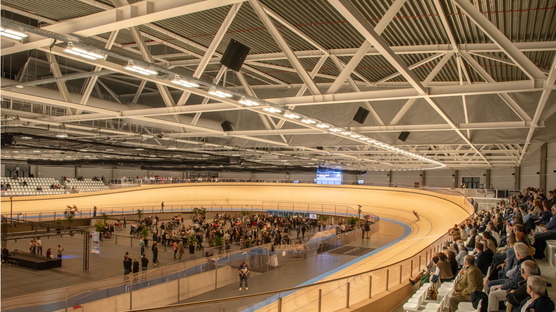 La piste elle-même est un ovale de 250 mètres entièrement en bois, composé de 11 000 lattes d’épicéa finlandais, représentant au total 5 000 tonnes. Le vélodrome est surplombé par une structure de toit en acier d’une portée d’environ 78 m . Cette structure repose sur des colonnes de béton préfabriquées. La qualité d’acier S460 a été choisie pour les fermes de toit porteuses. Il permet de réduire considérablement les dimensions des éléments (solives et diagonales) et de rendre la structure beaucoup plus légère.. Et, par conséquent, une réduction de la quantité de CO2 incorporée.