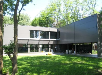 Tekst: <p>Les travaux concernent la construction d’un nouveau bâtiment d’accueil avec salle de conseil et espace de rencontre polyvalent. Ce projet est installé entre deux bâtiments existants de la Faculté des Sciences sociales. Le choix s’est porté sur l’acier, ce qui a permis une construction rapide de la toiture. Ce choix s’est aussi révélé avisé d’un point de vue budgétaire. La structure en pente du toit est constituée de profilés IPE sur lesquels un élément de toiture sandwich a été placé en tant que support pour la couverture à joint debout. La structure de la façade comporte des profilés HEB, HEM, UPN et des profilés creux, tous galvanisés. Le revêtement en tôles d’acier galvanisées a été placé sur un profilé galvanisé en Z. Les boîtes intérieures ont été fixées à la structure. Du carton-plâtre, dont la structure porteuse a été placée entre les profilés, en parachève la partie intérieure. L’exécution de toutes les surfaces en un seul matériau produit un beau contraste avec les briques des façades existantes.