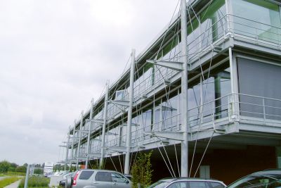 Pour faire face à ce problème, il a été décidé de construire au-dessus du parking existant, un nouveau bâtiment d’une capacité de 850 places. Le bâtiment est réalisé à partir d‘une ossature en acier galvanisé à chaud et d’un plancher collaborant. Le choix de ces matériaux a permis d’ériger une structure légère et mince en réduisant la durée du montage. <br>