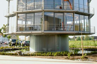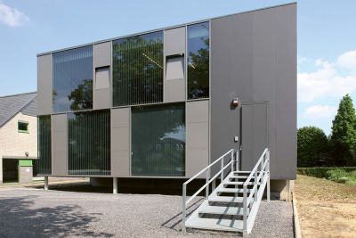 Tekst: <p>À Overijse, un moulin à grains industriel classé a été restauré et agrandi pour devenir un centre administratif. Les trois bâtiments existants ont subi une restauration légère et de nouvelles affectations leur ont été attribuées. L’évolution perceptible de ces bâtiments a impliqué l’utilisation d’un langage formel et de matériel contemporain. L’acier a été utilisé dans le mur-rideau de la façade sud combiné à une structure en avant-plan avec pare-soleil. Le nouveau volume en toiture au-dessus du bâtiment central comporte une structure en acier complétée par un mur-rideau vitré et un toit en steeldeck. Le choix s’est porté sur l’acier, pour sa légèreté, son intégrité, son aspect durable et le peu d’entretien qu’il requiert. De plus, la structure en acier fait partie de l’architecture et un mur-rideau en acier laisse davantage de liberté à la créativité du concepteur.