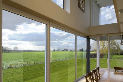 Tekst: <p>Au sommet d’une côte des Ardennes flamandes, une maison de campagne pleine de charme s’est vu adjoindre une extension étonnante. Le souci majeur de ce projet était de tirer le meilleur parti du panorama sur les environs. Au niveau de la cave, l’extension est limitée : un tube central en massif rend la construction plus aérienne. De grands treillis en acier d’une longueur totale de plus de 15 m ont été accrochés à cette fin au noyau central. Du côté pente, les forces de traction sont dérivées via des tirants vers le pied des fondations sous le noyau central. Un porte-à-faux de près de 6 m est ainsi créé du côté où le sol est plat. L’enveloppe extérieure du nouveau volume en saillie est complètement vitrée, ce qui renforce encore davantage le rôle de décor tenu par l’environnement. Dans ce projet, le choix de l’acier s’est révélé essentiel pour matérialiser à la fois le caractère aérien et l’ouverture sur l’extérieur. De même, il a permis de façon remarquable de laisser le treillis visible dans sa totalité. </p>