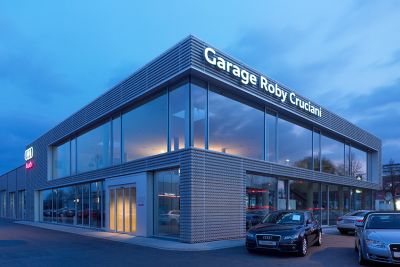 Tekst: <p>Le garage est un point de vente officiel pour voitures Audi. Le bâtiment doit dès lors correspondre aux critères précis du constructeur automobile qui impose un certain nombre de détails et de finitions. <br>