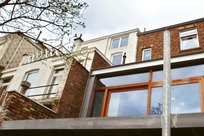 Tekst: <p>En concertation avec les services du patrimoine (Monumentenzorg), une habitation datant du début du 19e siècle a été restaurée complètement dans son état originel et agrandie simultanément par l’adjonction d’une extension en acier à l’arrière et sur le côté. Dans ce projet, on a cherché à créer un volume complètement contrasté par rapport au caractère historique de l’habitation classée. L’acier s’est révélé être la solution adéquate pour la réalisation du projet dans son ensemble et pour y apporter un raffinement moderne, tant dans les rapports des volumes que dans la finition des détails ou l’utilisation des matériaux. </p>