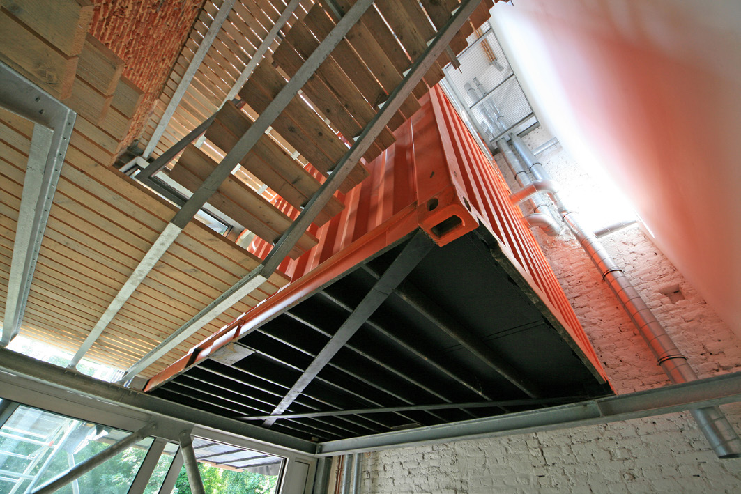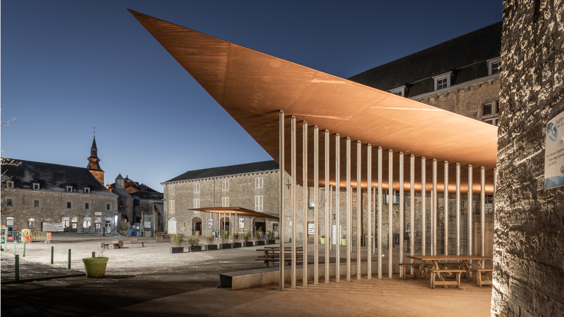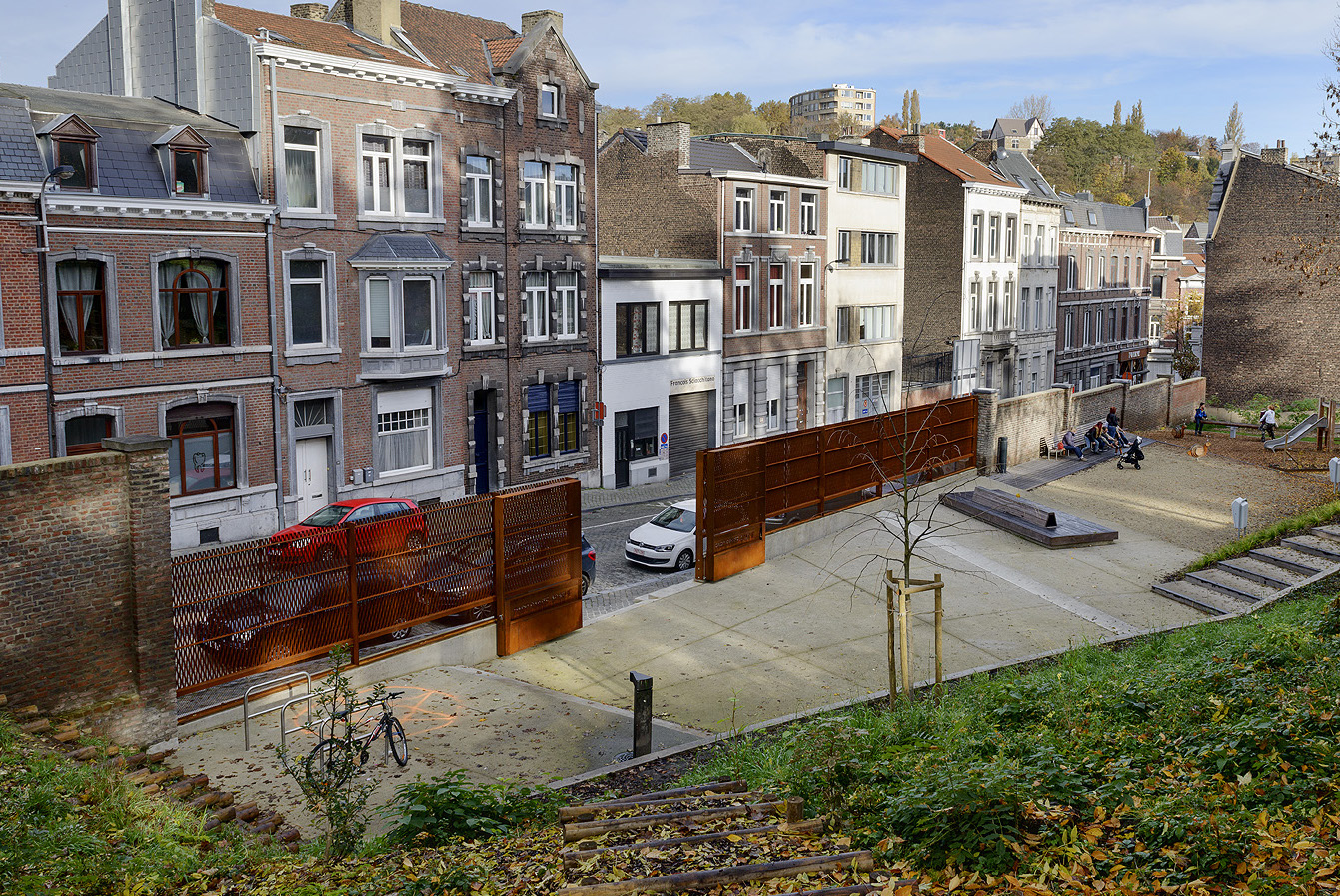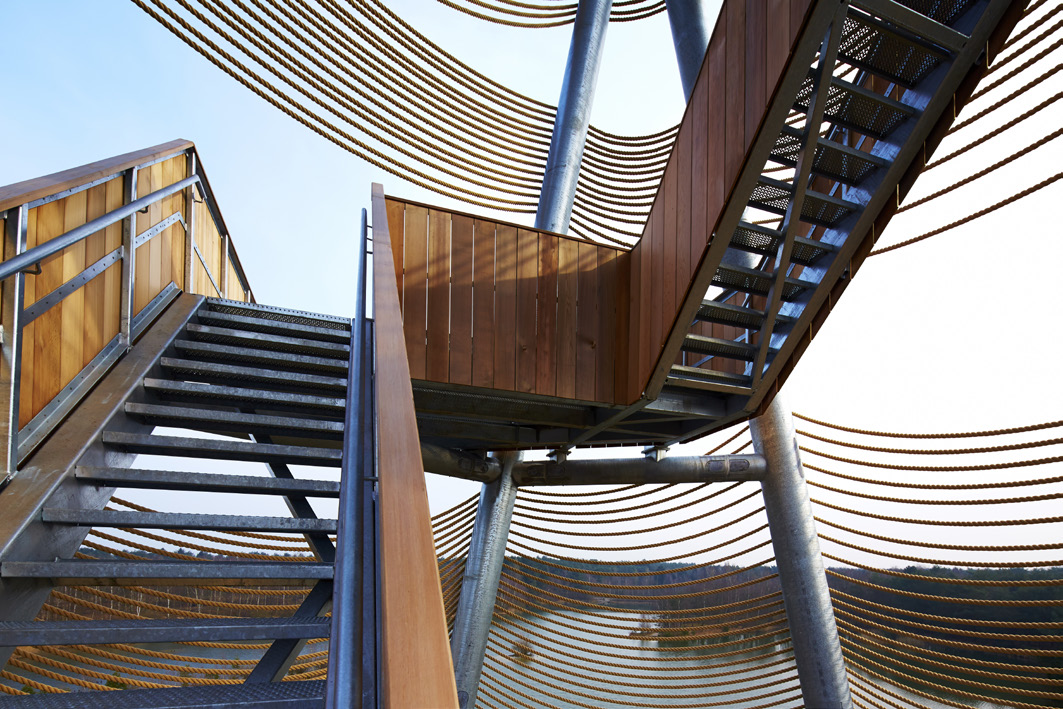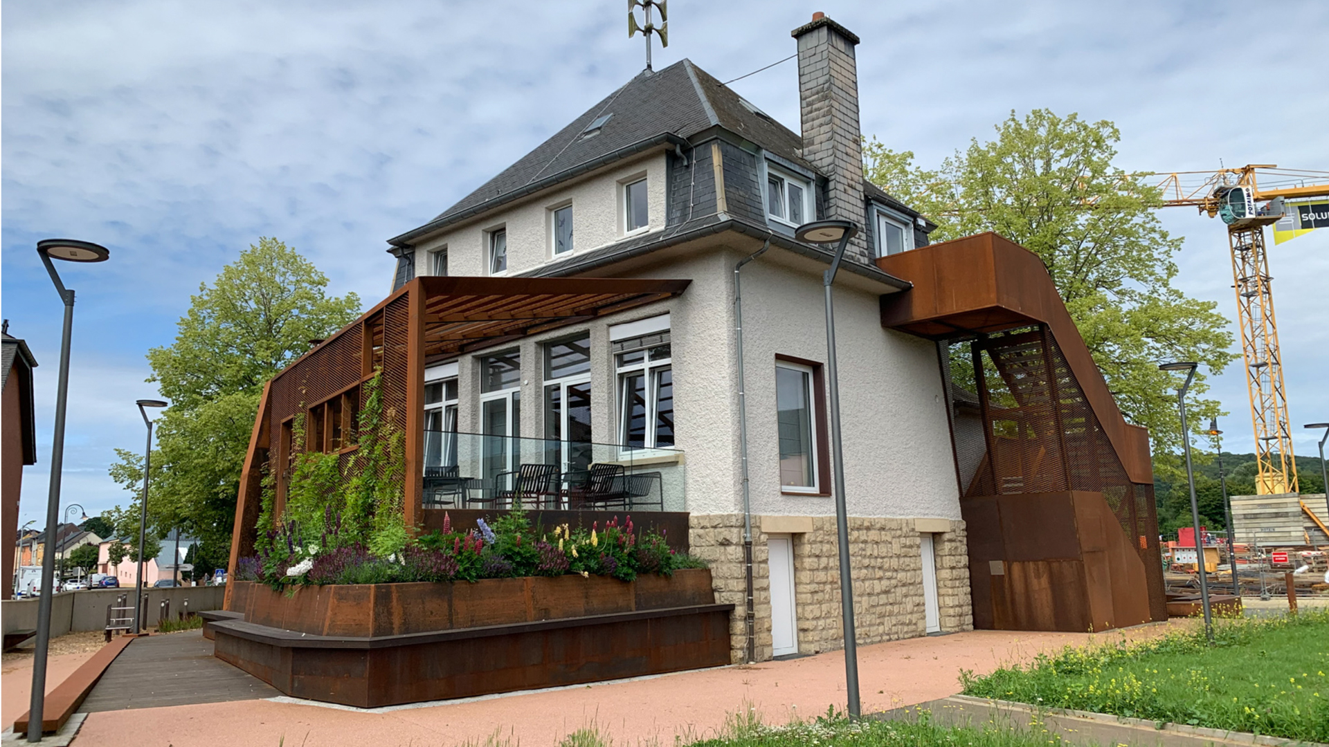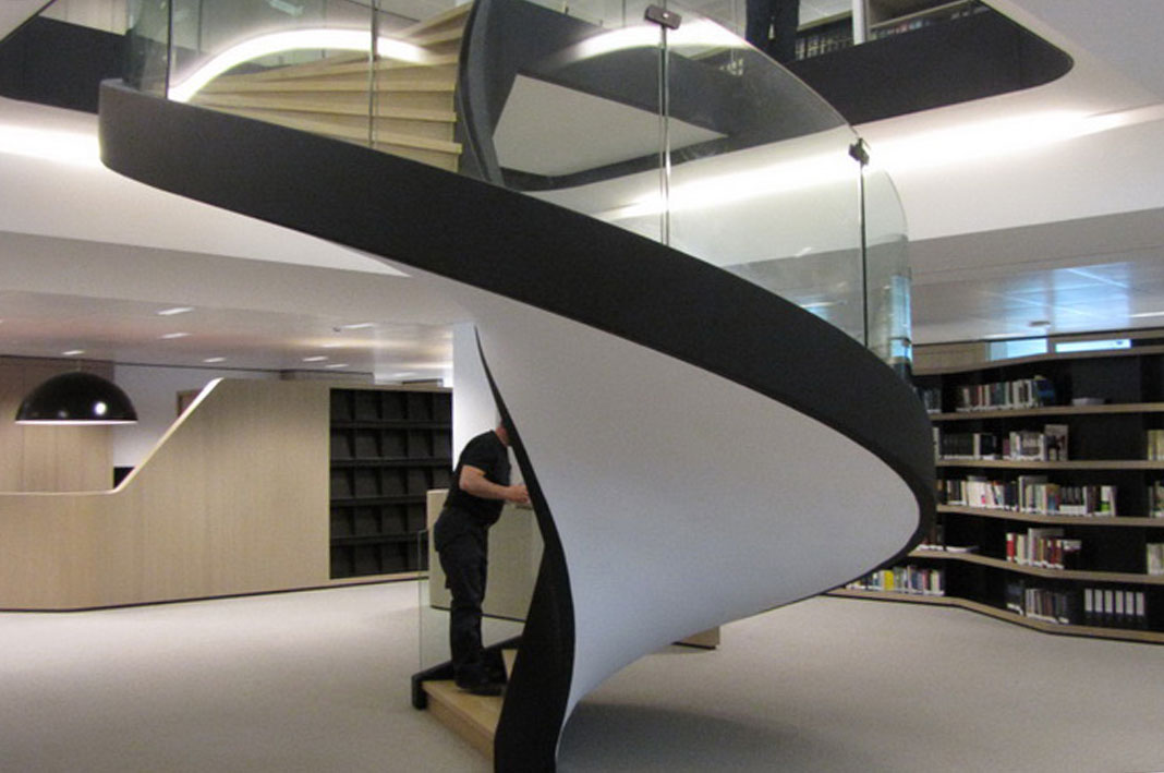 Escalier hélicoïdal en acier auto-patinable à l'ilôt Madeleine