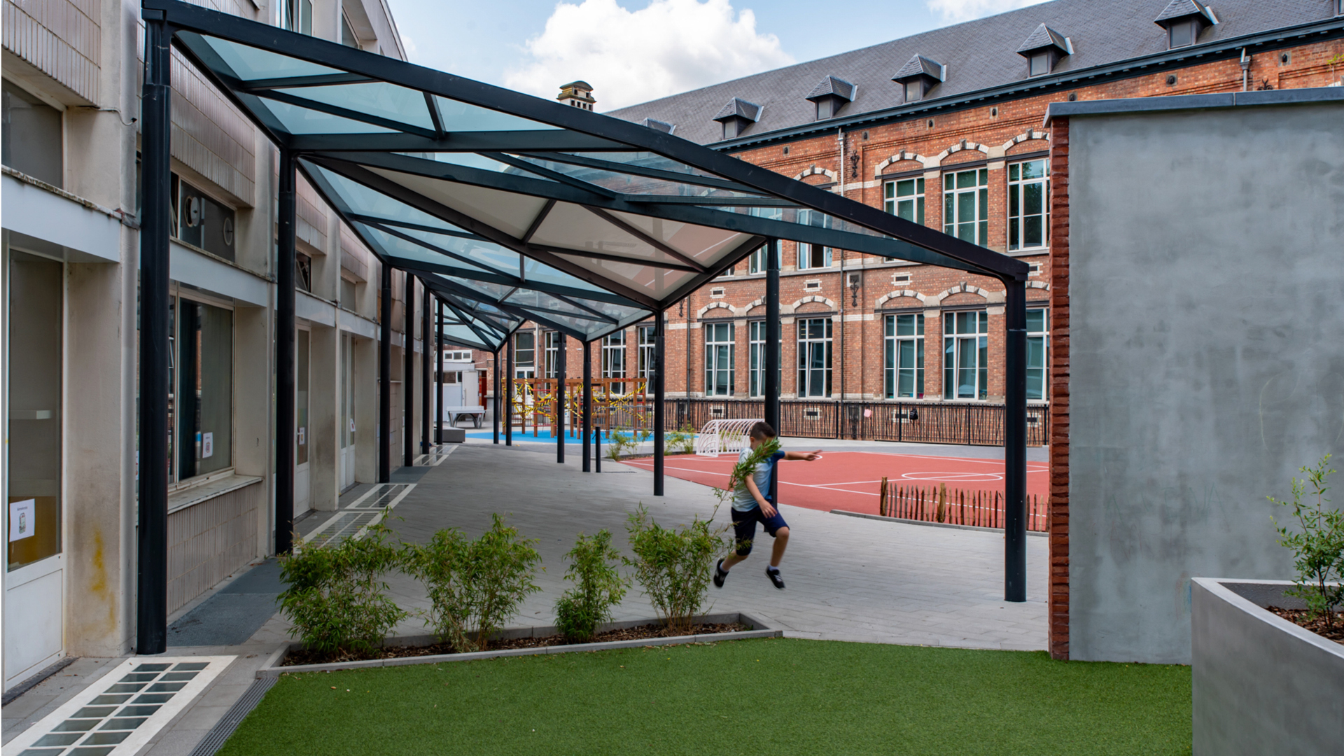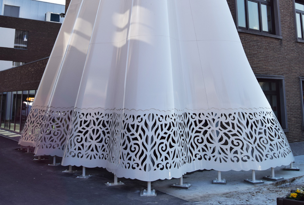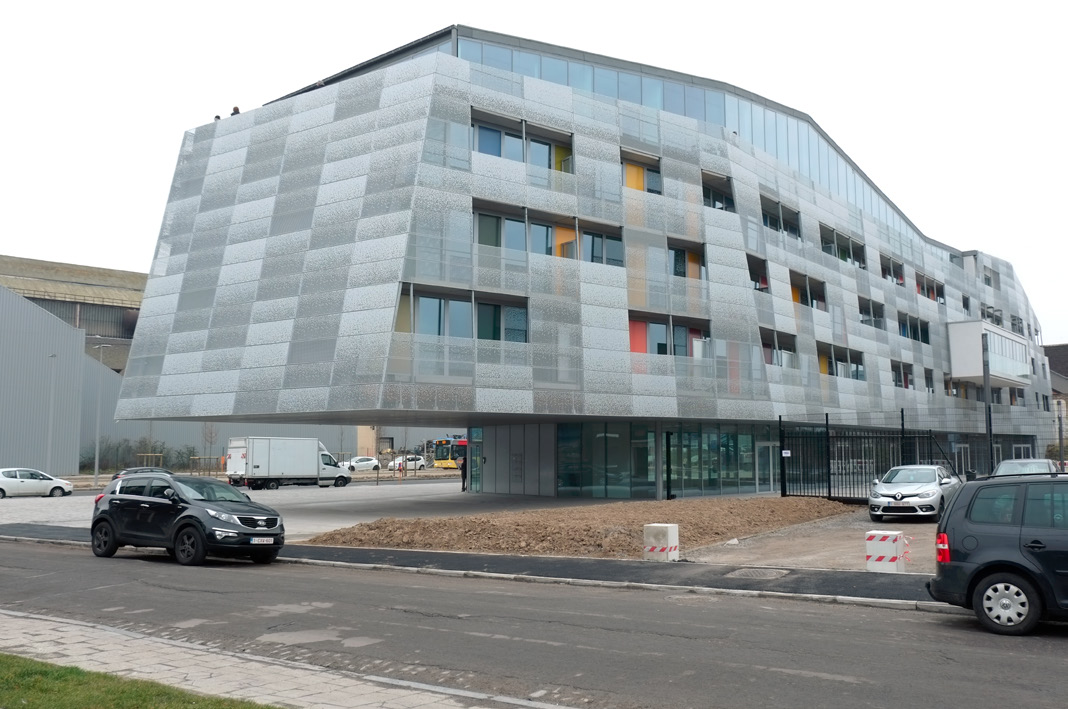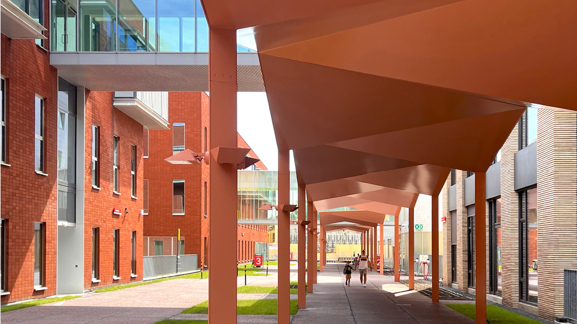 Auvent d’entrée et cage d’ascenseur de l’Hôpital Maria Middelares
