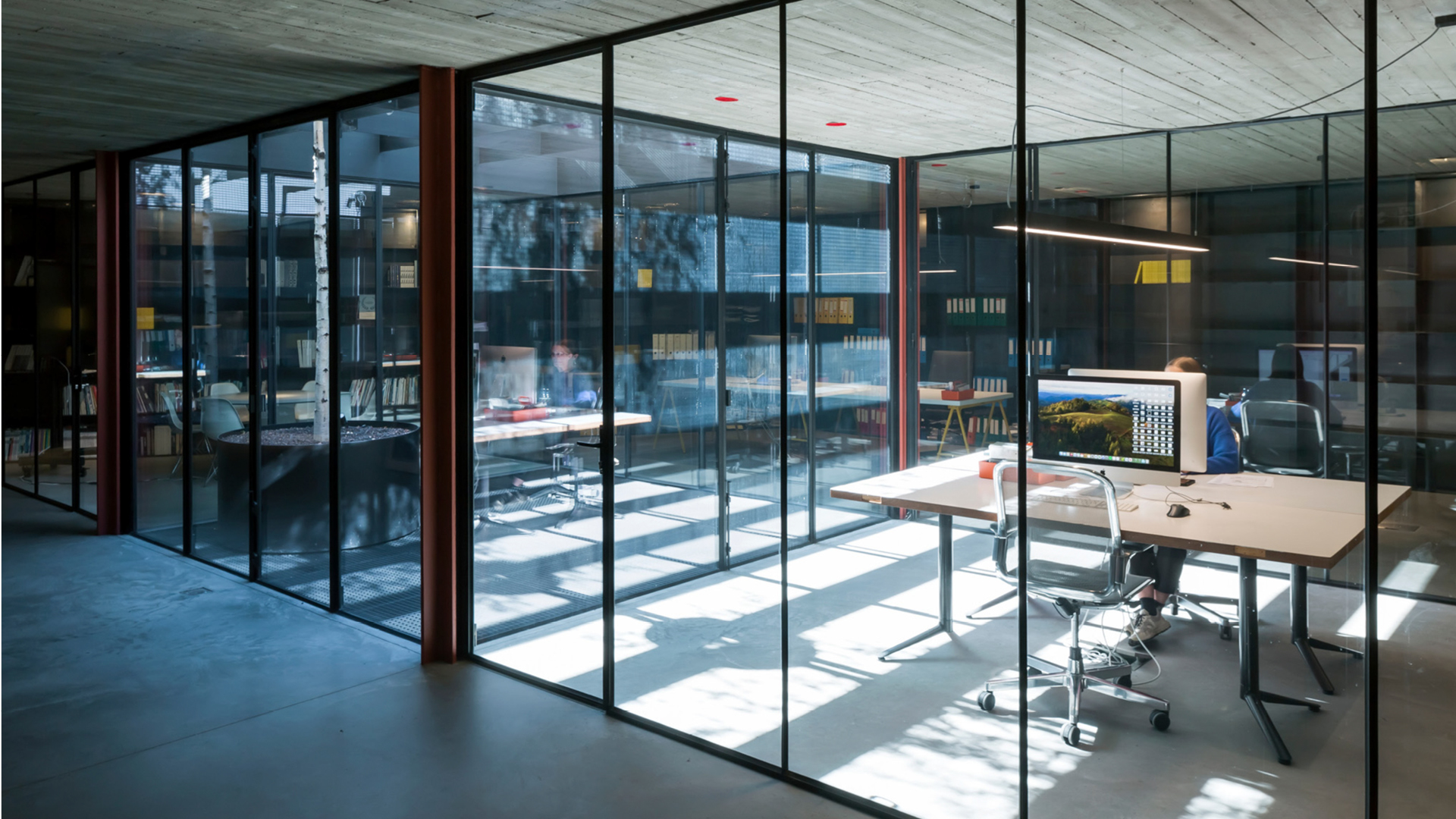 Pharmacie avec profils de fenêtres en acier sur mesure