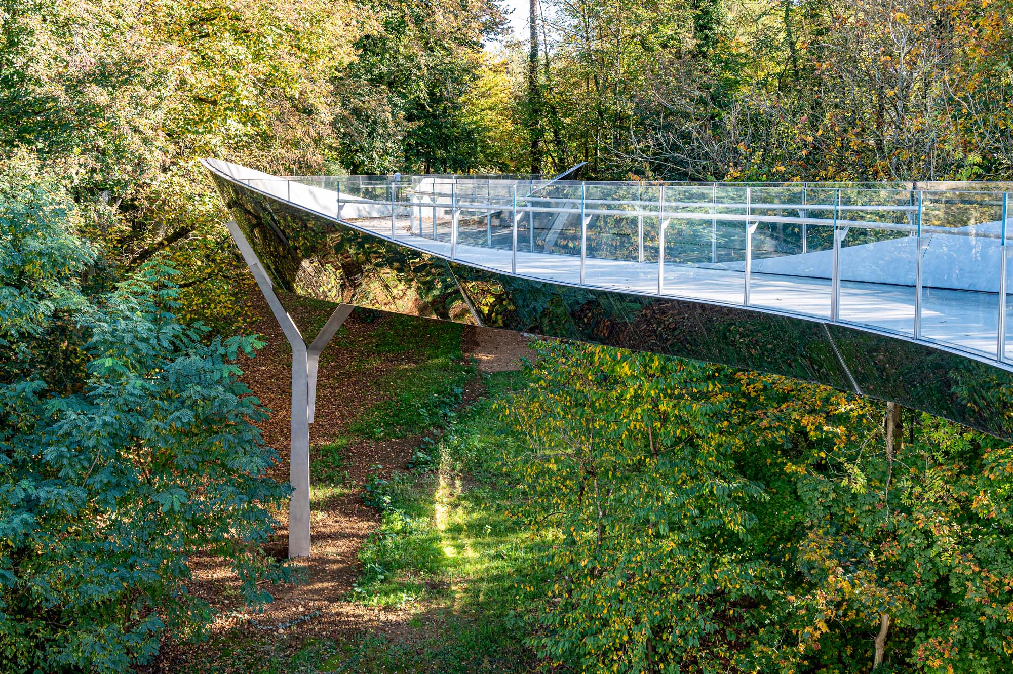 L’acier qui faisait disparaitre une passerelle dans les arbres